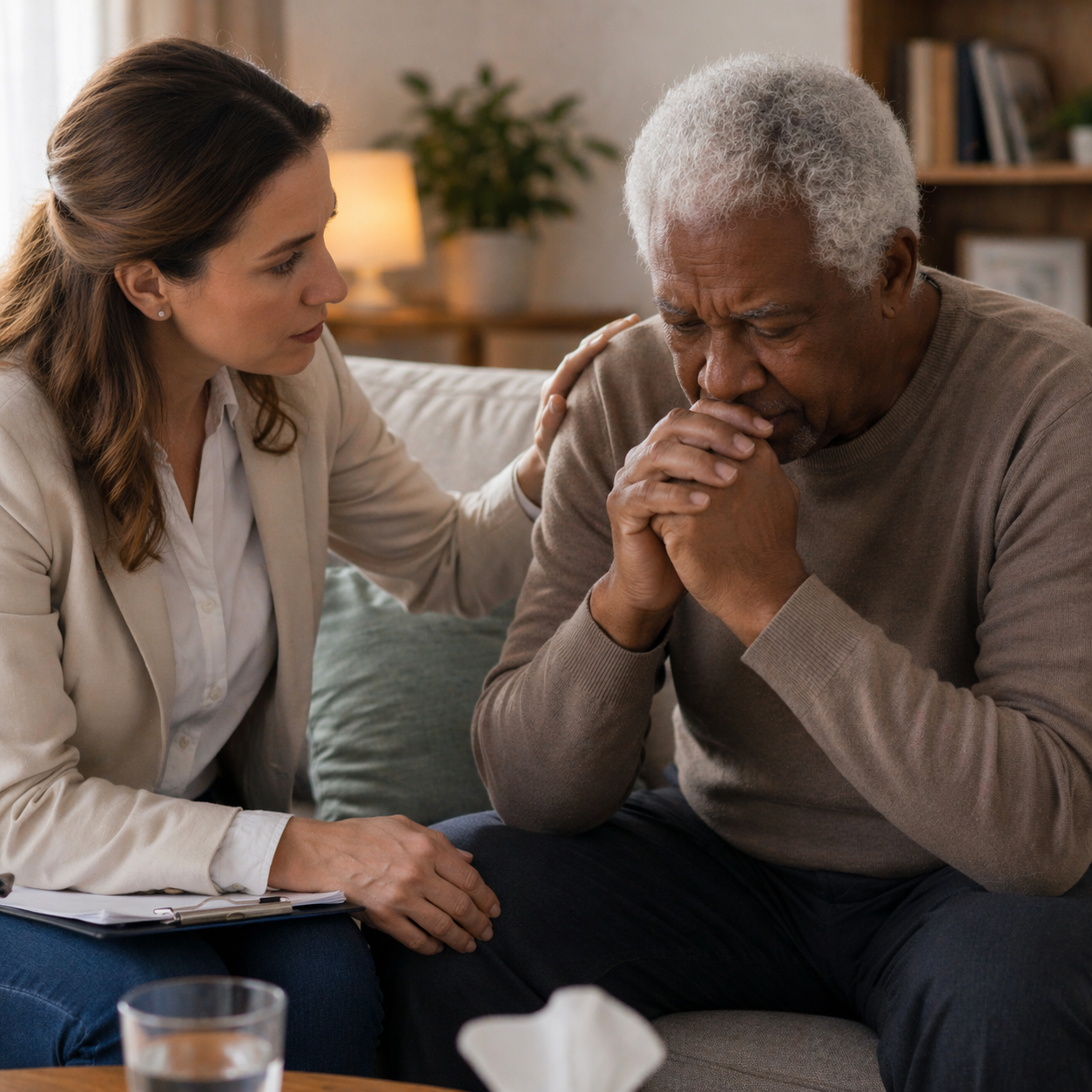 Apoio emocional para reduzir a ansiedade e fortalecer o bem-estar da família e do paciente.